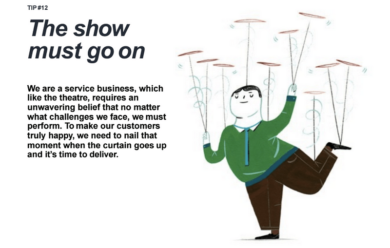 In my company’s culture book, the last tip called the show must go on. I always love this the most and talk about this a lot when delivering on boarding session to newcomers in my team.